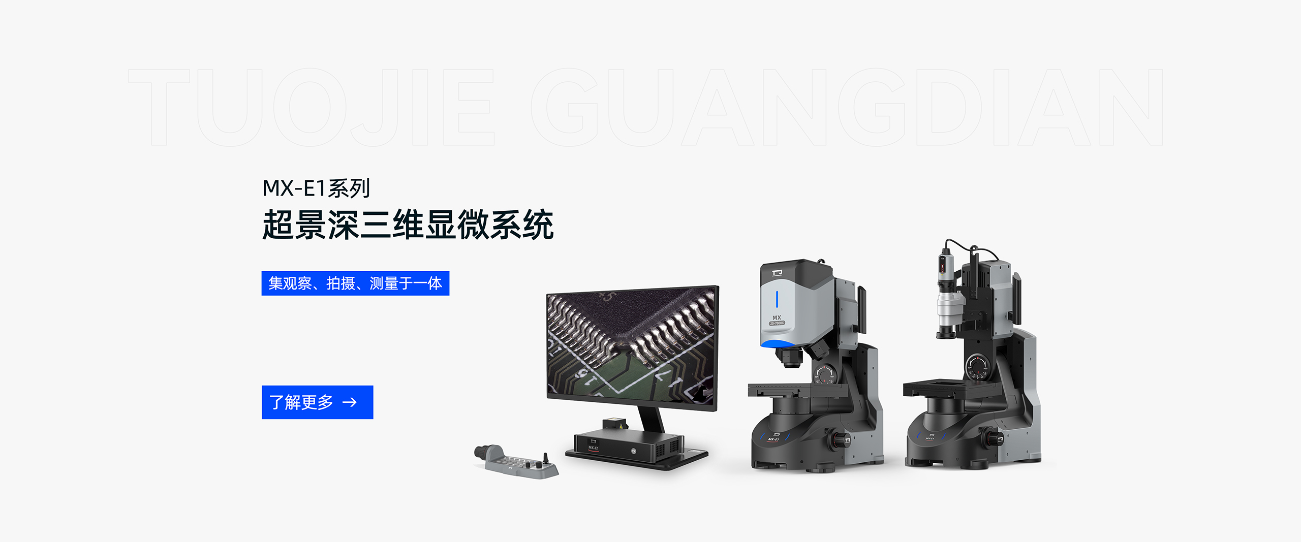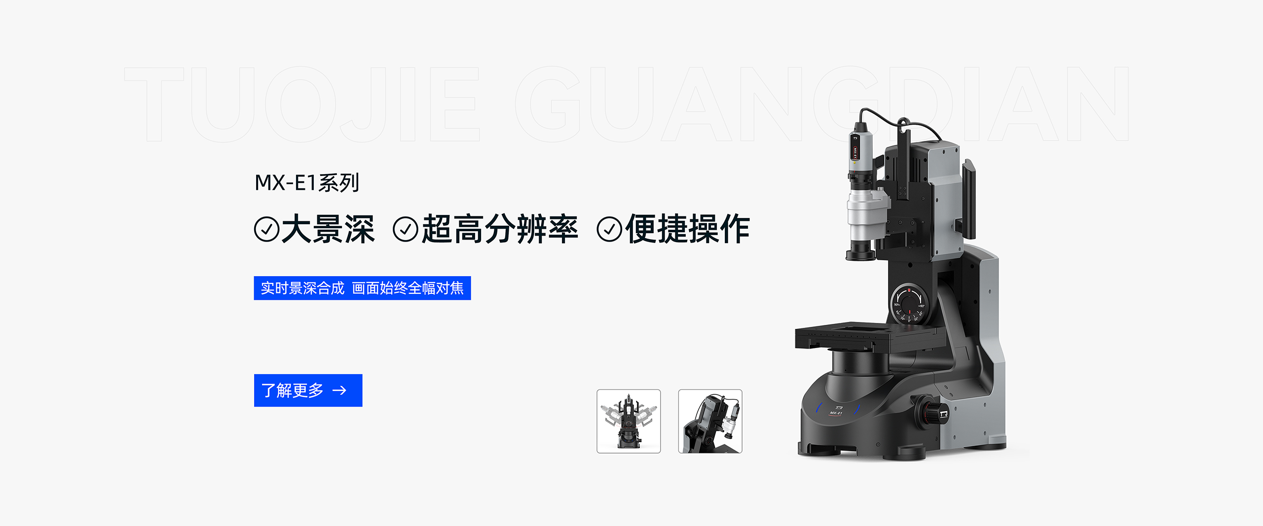 全新超景深三维显微系统 MX-E1系列 集合了超清晰的4k图像处理引擎,同时也具有景深叠加的功能,可电动变倍调焦,同样可多角度倾斜观察。